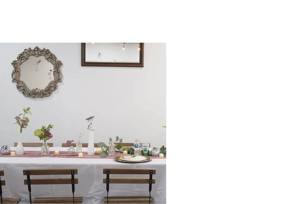 set-up + clean-up service / disposable table settings + cutlery. gold chargers, table décor, + so much more.