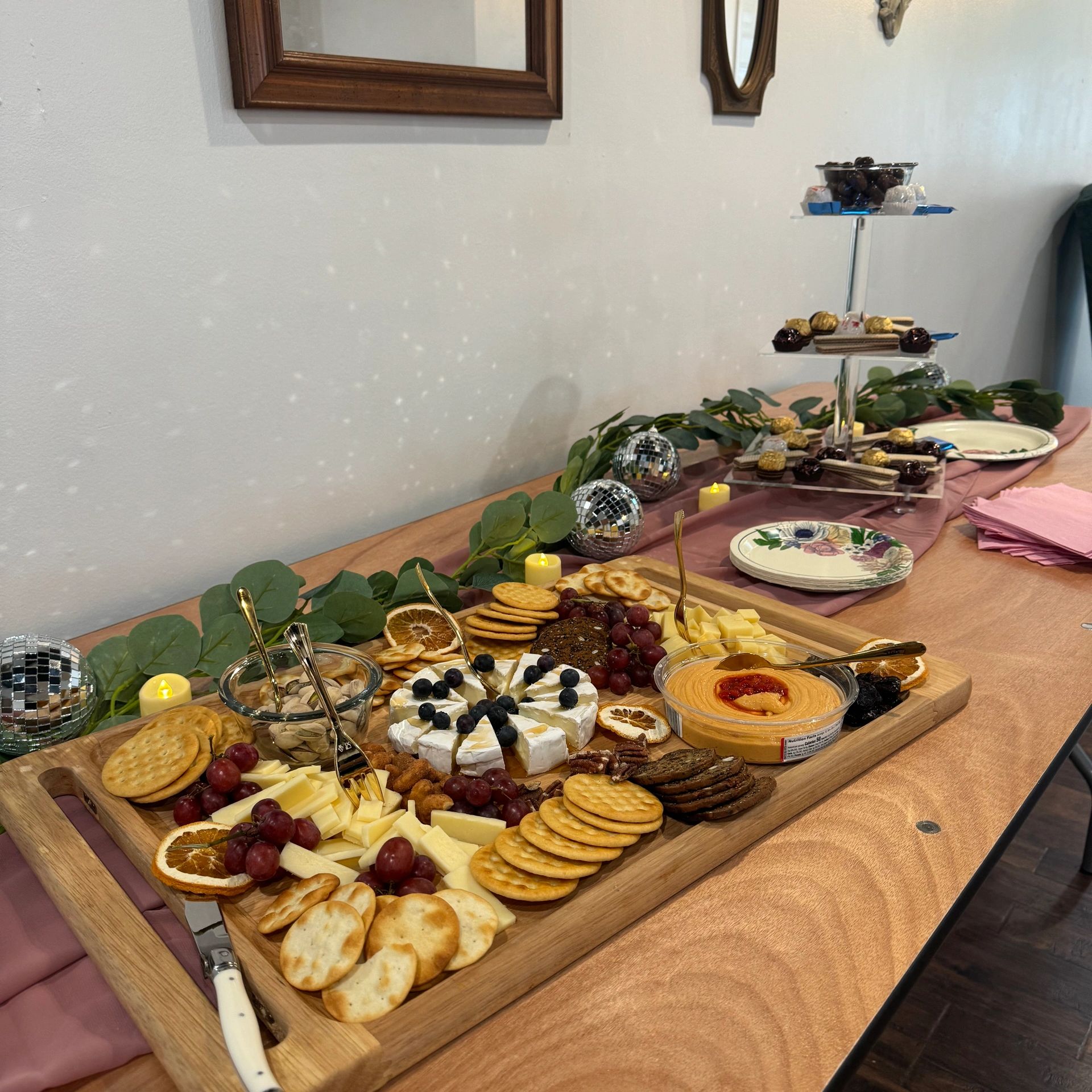 Savory + sweet snacks, bottled water, soft drinks / BYOB - wine glass stemware provided